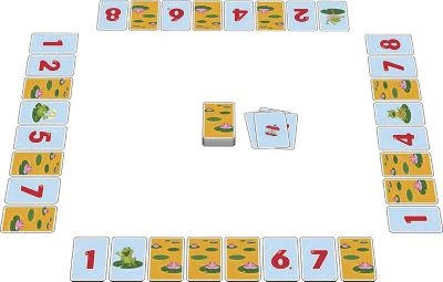 Die Frösche sind los und wollen hüpfen! Mit dem „Fröschis“ Kinderkartenspiel kommt fröhlicher Spielespaß für die ganze Familie. Die Zahlenwerte der eigenen Kartenreihe sollen mit Hilfe der Fröschis aufsteigend angeordnet werden. Gar nicht so einfach, wenn in dem Teich auch noch unnütze Dinge herumschwimmen, die so gar nicht in die Zahlenreihe passen! Die Karten müssen geschickt getauscht werden, damit die großen Sprünge auch gelingen. Ein lustiges Kinderkartenspiel mit einfachen und verständlichen Regeln.