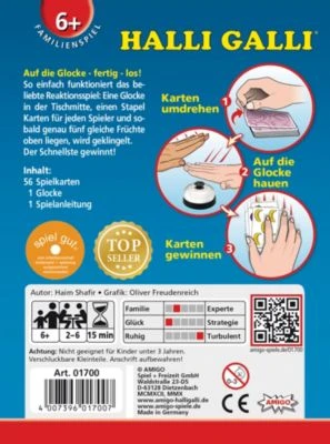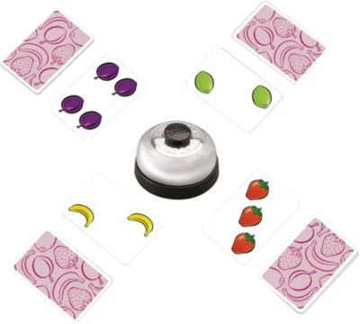 Schnelligkeit und ein gutes Auge sind hier Trumpf. Sobald Sie fünf gleiche Früchte auf den ausgespielten Karten entdecken, schlagen Sie schnell auf die Klingel. Wer am Ende die meisten Karten erklingelt hat, gewinnt!